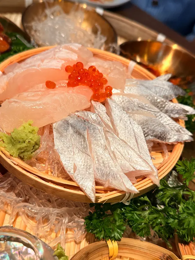 ✨比目魚刺身 大大盤比目魚刺身十分新鮮🐟各部位都有不同質感,整體韓國刺身口感比較紮實,質地細嫩,搭上醬油及芥末更能提鮮