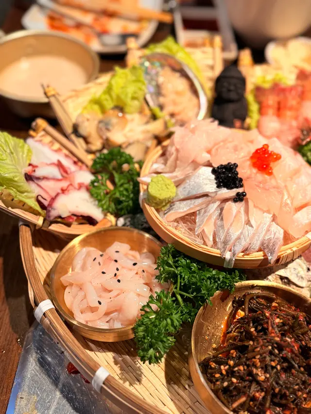 🔸 濟州季節限定 10款韓國刺身 ,刺身拼盤搭配石頭爺爺造型超吸睛!