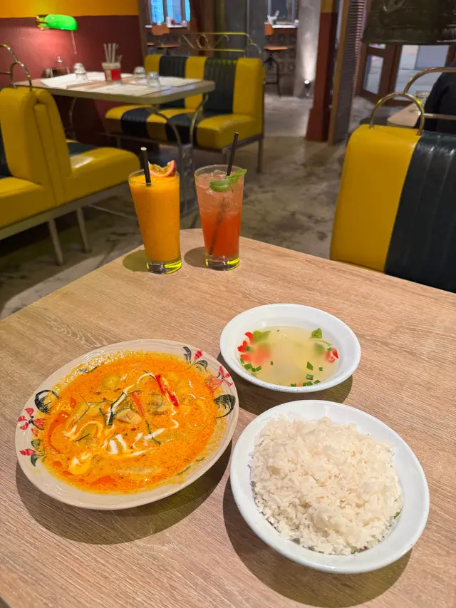 Thai King Chicken Curry 泰皇咖哩雞配白飯:材料包括《Chicken, Lemongrass, onion, thai garlic, herbs and coconut sauce 雞肉、香茅、洋蔥、香蒜、泰式香草、椰子醬》🤣;咖喱汁非常香滑唔係好辣,有濃郁椰汁味,要嚟撈飯食好正🤣;雞件亦都幾滑🤣