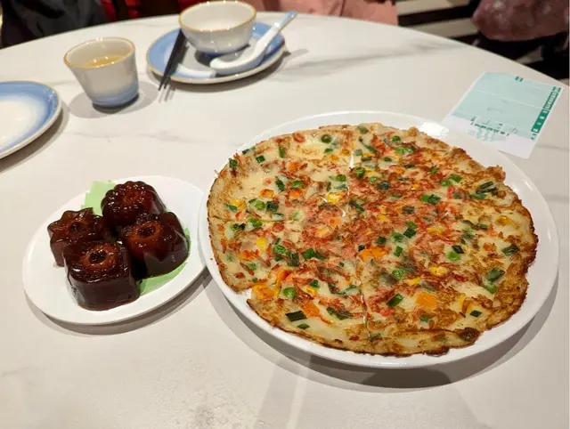 「薄罉」&「山渣糕」 er1221等级32024-01-251K 浏览 关注 第二次光臨這間茶樓,晚市及午市各有驚喜,再次光顧因為喜歡這裏不太擠迫。一款直徑11吋的「薄罉」上枱前已經分成八小塊,足夠四人共享。它半煎半炸得金黃香脆,口感薄而脆,咬上一口非常有嚼勁。蝦米、甘筍絲、蔥絲、粟米粒和蛋的組合散發出濃郁的香氣。整體口味一流,絕對值得一試。由於我們有八個人用餐,所以最後又多點了一份,未離枱已要回味。另外,「山渣糕」也是一道令人驚艷的美點,它的外觀呈現褐色,入口感到質地綿密紮實,入口即化,也帶來濃郁的口感和滋味,成為了次用餐中的亮點之一。1以上食记乃用户个人意见 , 并不代表OpenRice之观点。赞好分享「薄罉」&「山渣糕」 潮樓 https://s.openrice.com/QrLT0j4XG00检举 张贴 评分5味道5环境3服务5卫生4抵食用餐日期2024-01-21等候时间1 分钟 (堂食)人均消费$135 (午餐)