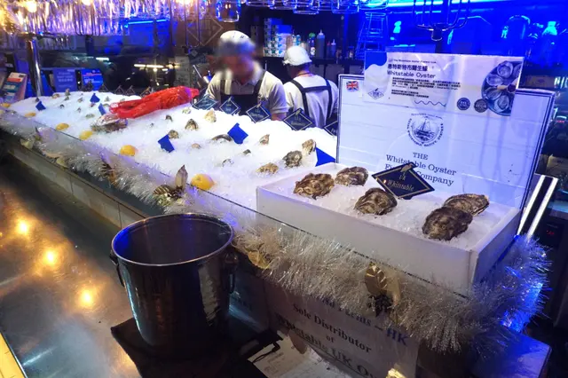 鋪面嘅櫥窗玻璃已經印咗大大隻字「Oysters」,經過嘅人都知道佢主打喺生蠔,而入門口嘅左邊 就放咗好多唔同國家嘅生蠔,品種非常之多,仲見到有兩位開蠔師負責處理。
