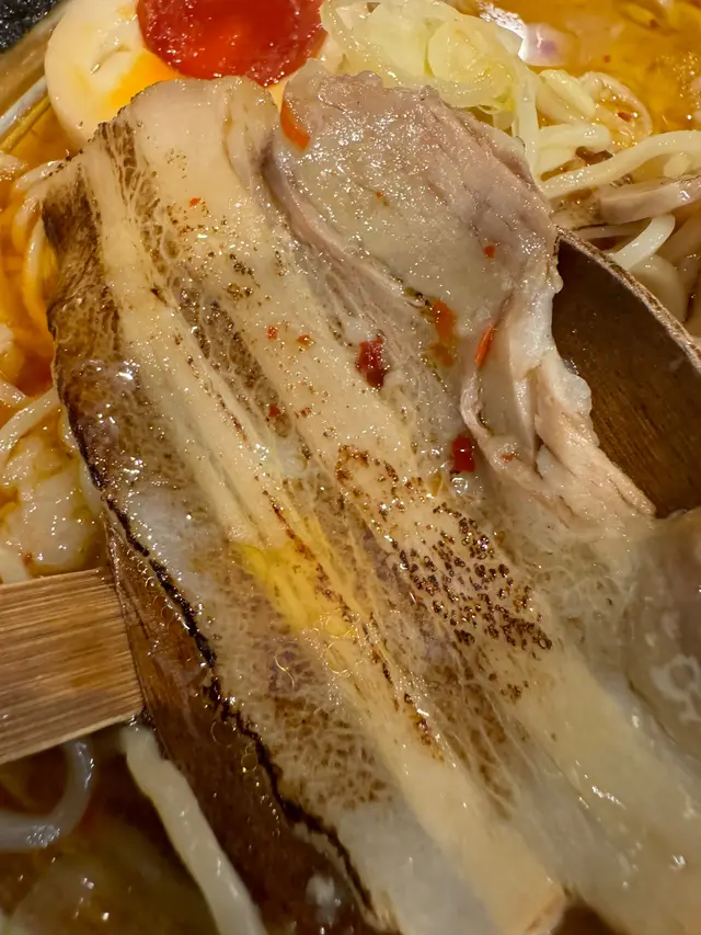 叫得二重奏原來就係一碗拉麵入面有哂豬軟骨及叉燒兩款,對於貪心想一次試哂兩款既小編當然就order左呢款啦,係湯底方面有兩款選擇分別係醬油豚骨及激辛湯底,對於想試下辣既小編當然係選後者,豚骨湯底加上辣味噌,order左小辣湯底麵香濃帶微辣,認真惹味,叉燒肥瘦均勻,外皮燒到微微焦香,咬落好邪惡阿,同豬軟骨一樣出色,果然無得彈。