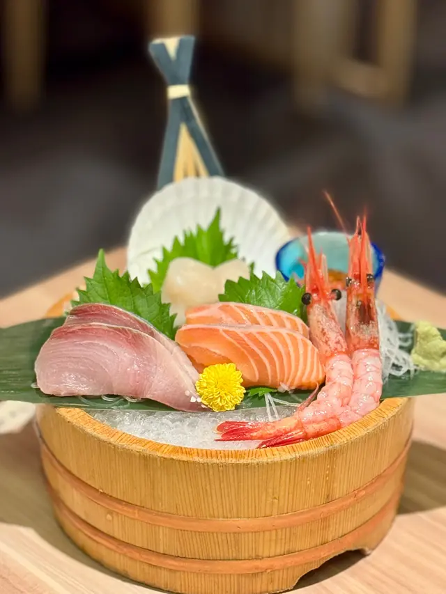 精選刺身盛合(5品):有三文魚、三文魚籽、油甘魚、帆立貝、甜蝦,全部都算新鮮🤣