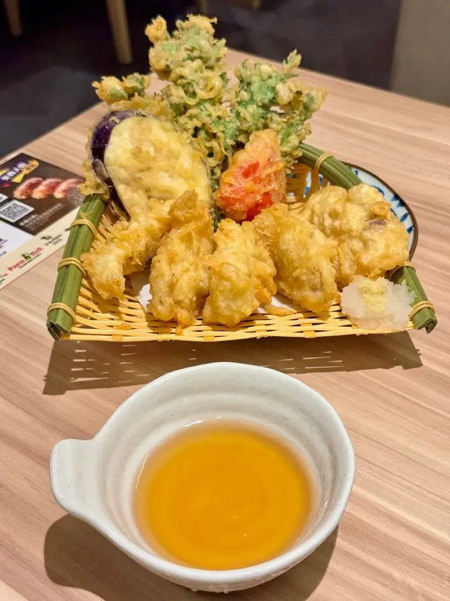 日本產雞肉&野菜天婦羅盛合:雞肉大大塊有好多塊,野菜係皇帝菜,全部都炸得幾香口🤣