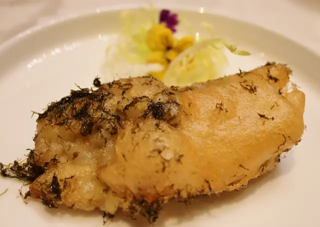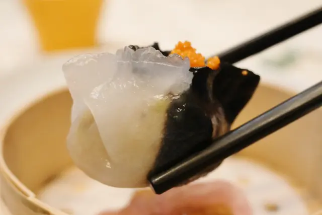 黑白色餃皮加上幾粒魚子點綴,已令人印象深刻,入面是滑嫩的鱈魚肉,很好吃