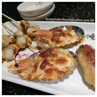 再來的燒物,有「鹽燒雞翼」外表香軟內裏肉質鮮嫩多汁,但不及南蠻炸雞翼的香濃惹味;「芝士大蝦金龍船」感覺創新,外貌亦相當討好,香濃芝士配上去殼海蝦,海蝦肉質鮮嫩,爽口彈牙,黏上香濃煙韌的芝士,令鮮味提升,「芝士控」必吃;「汁燒帆立貝」燒汁配鮮甜的燒帆立貝,恰當的配搭組合,唯size太小了,令人有不足的感覺。