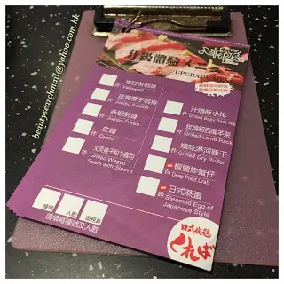 《八幡屋日本料理》任食兩小時,本身甚為超值,而且另加$50即可享有『升級體驗』,還有我喜愛的珍寶帶子、羊架,以及甚少在放題中出現的河豚干,連同加一服務費,也不到 $250 一位,真的非常超值,當然要加錢品嚐。