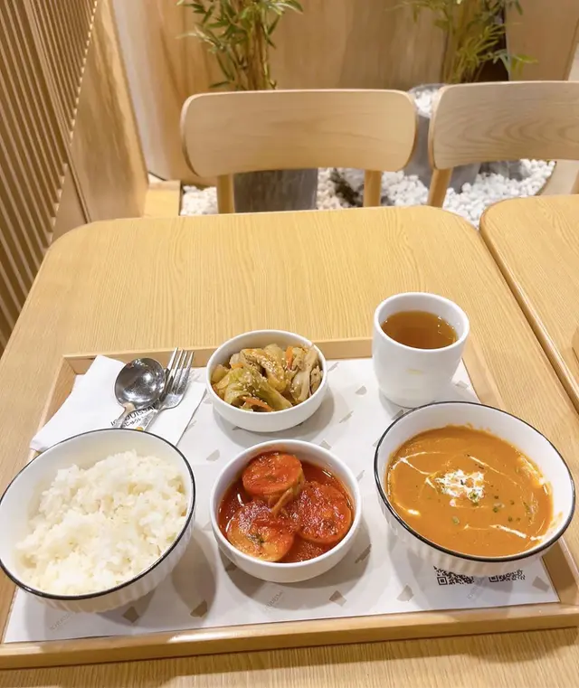 套餐包括兩份湯品、一份咖喱飯、一份米飯、兩份一品料理及兩杯飲品