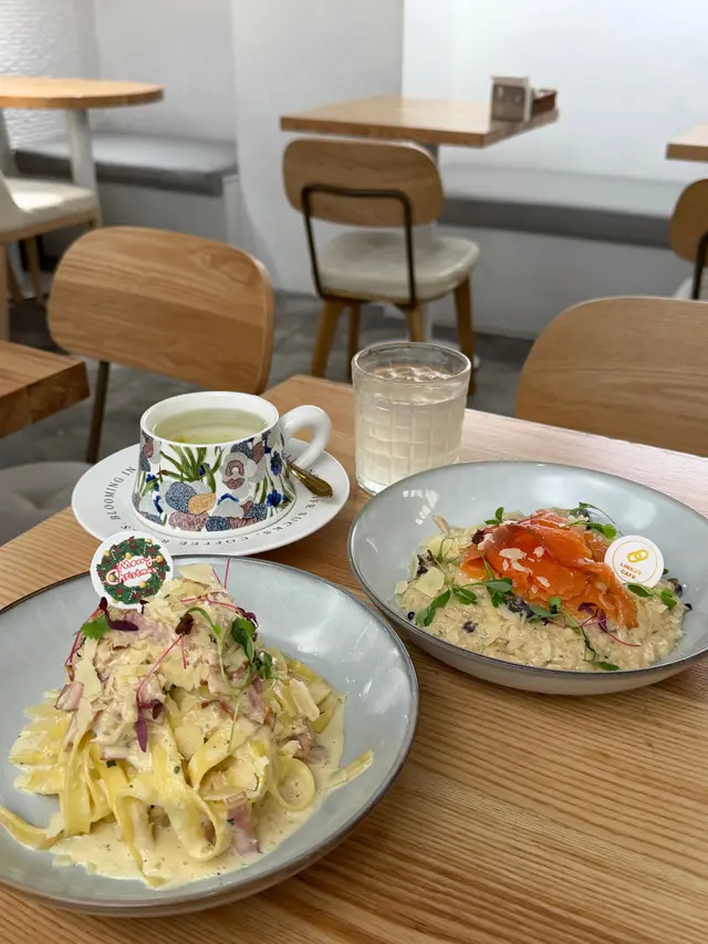 闊條意粉,軟硬度適中,搭配煙肉🥓、芝士碎,整體好creamy🥹仲有個細卡牌俾你打卡.ᐟ.ᐟ