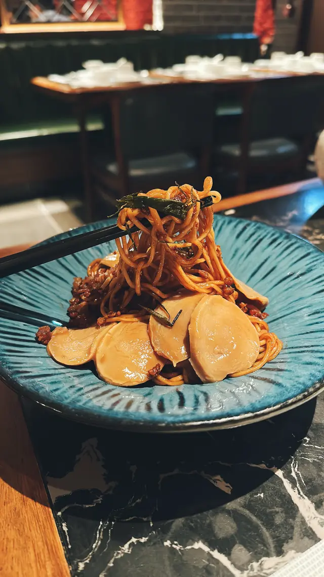 好多大大塊鮑片伴碟,拌麵食落好香蔥油味,份量都幾多,3個人食都ok