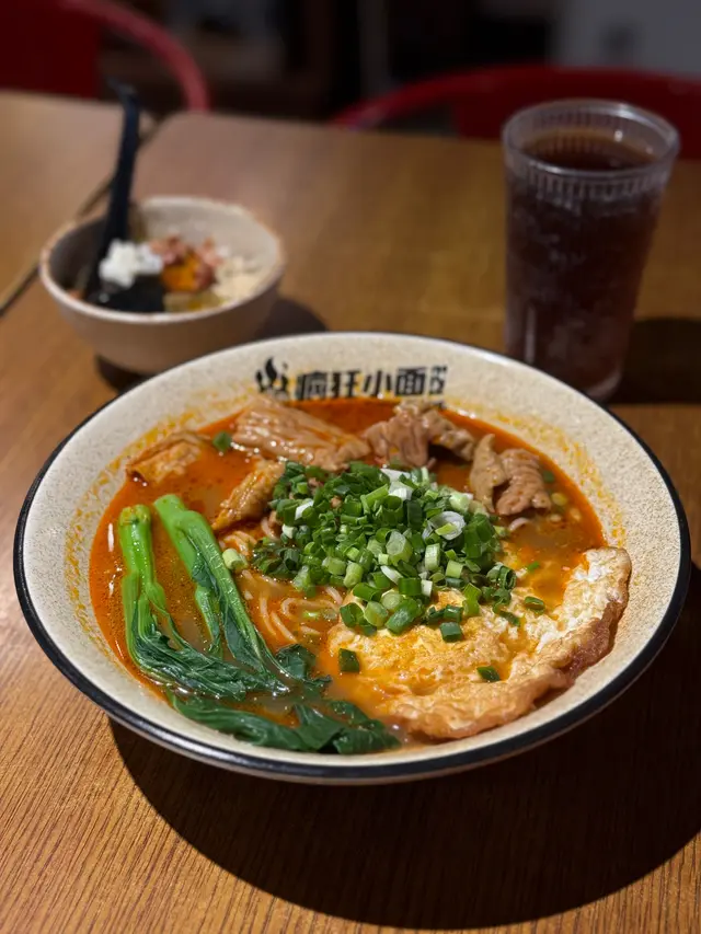 嚟到呢度,主角當然係佢哋嘅麵食。我叫咗個「瘋狂肥腸拉麵套餐」,一上枱,嗰股濃郁嘅麻辣香氣已經撲鼻而來,令人食指大動🤤。