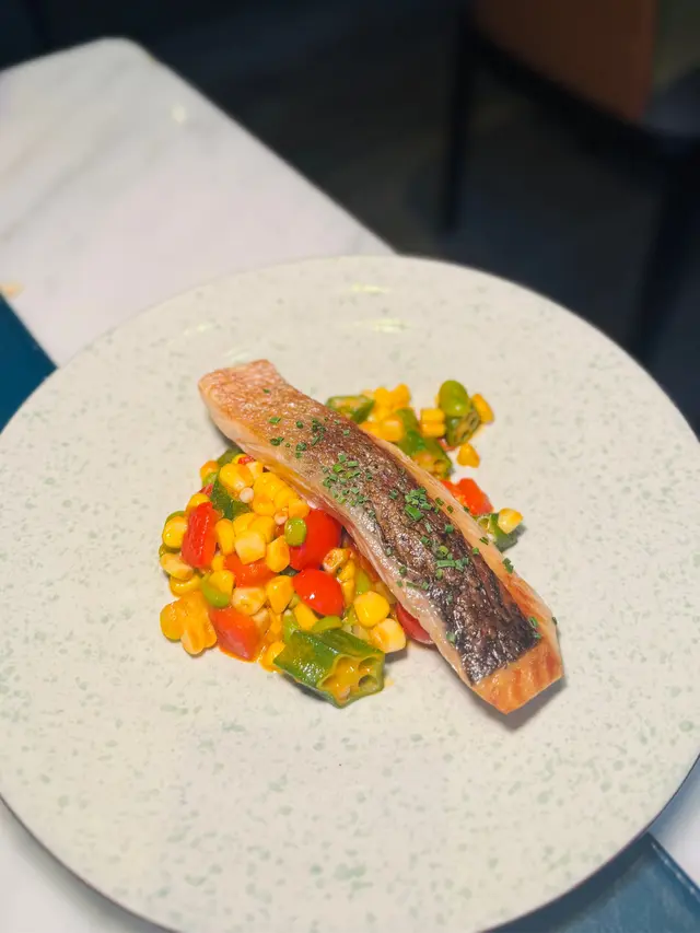 三文魚外皮脆內裡juicy👍🏻,配埋蕃茄汁蔬果夠哂清新🍅。