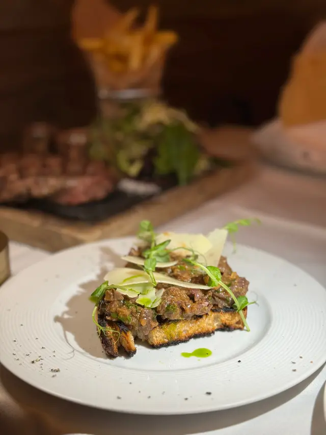 係一個好開胃嘅前菜,上層鋪滿用特製醬汁醃好嘅和牛他他,下層係烤到香脆嘅多士,和牛他他除咗有濃郁嘅牛味之外,味道亦都有香滑嘅橄欖油同微辣嘅香料醬,所以食落好開胃醒神