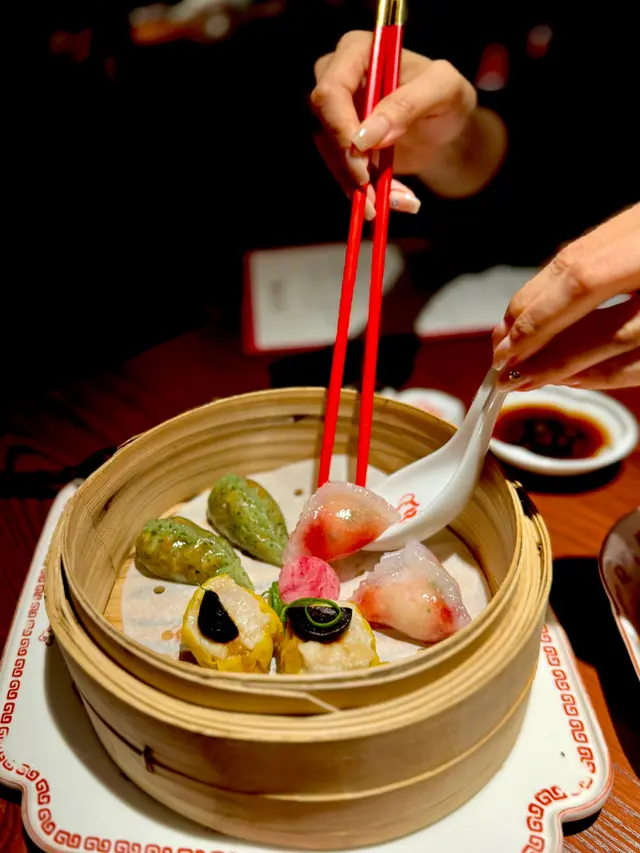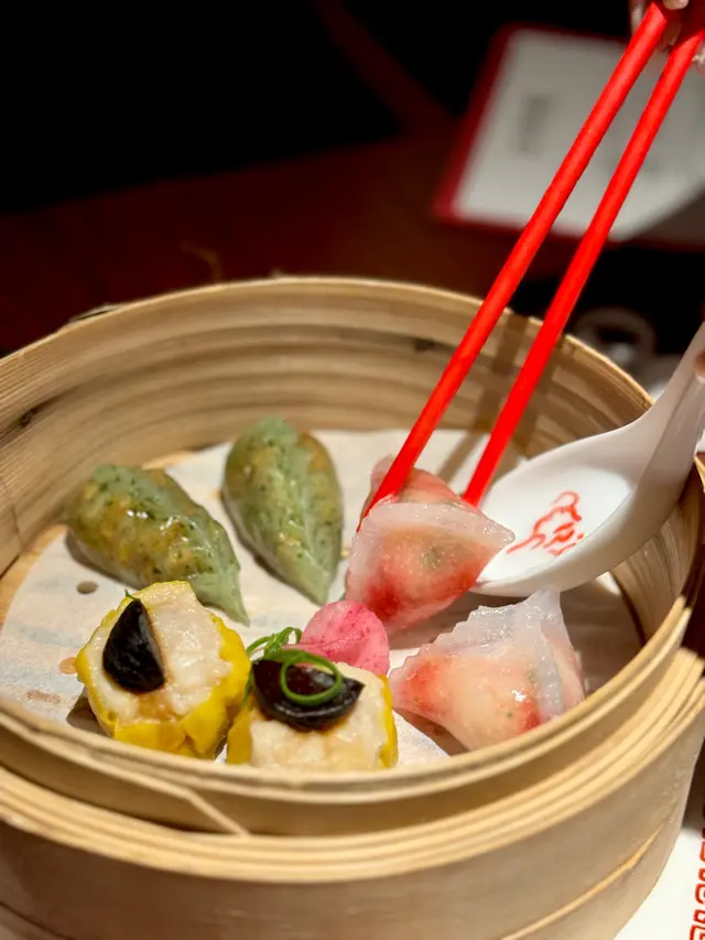 包括有粉嫩的鮮味甜菜頭蝦蟹餃、搭配黑醋的翡翠姬松茸素餃以及有脆脆軟骨口感的黑蒜雞軟骨燒賣🧄