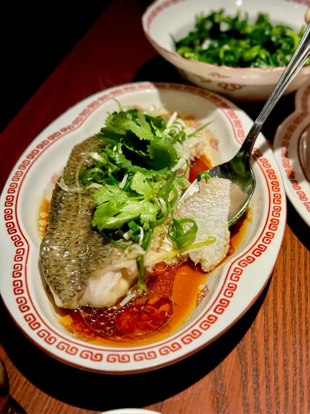貴佬𝐟𝐫𝐢𝐞𝐧𝐝𝐥𝐲的蒸魚就是要把魚頭魚尾魚骨都去掉😂中式烹調煮法炮製𝐒𝐞𝐚 𝐁𝐚𝐬𝐬居然想不到的驚喜😋魚肉雪白嫩滑,片片分明,碩大的整體魚被我們瞬間𝐊𝐎。