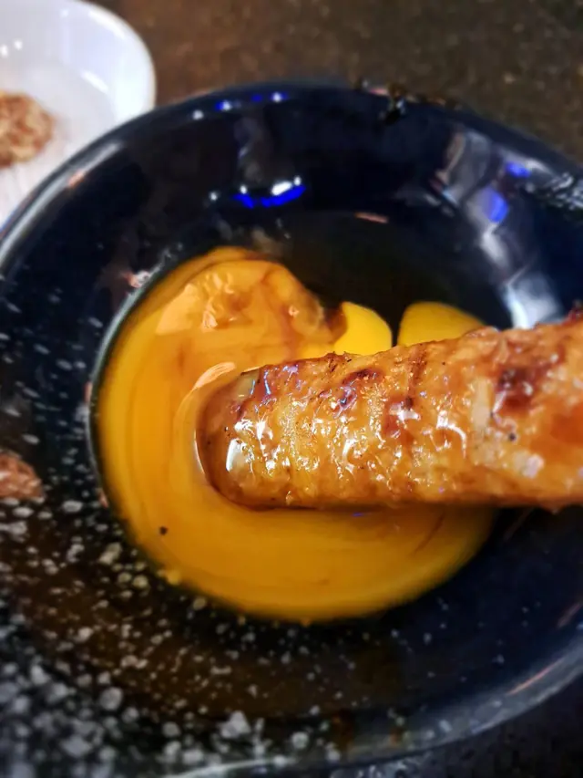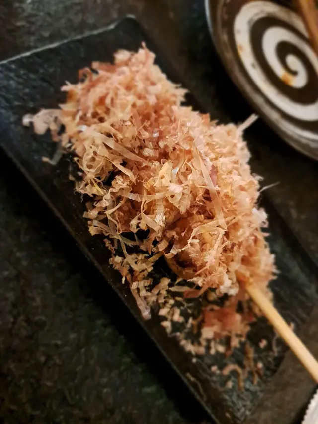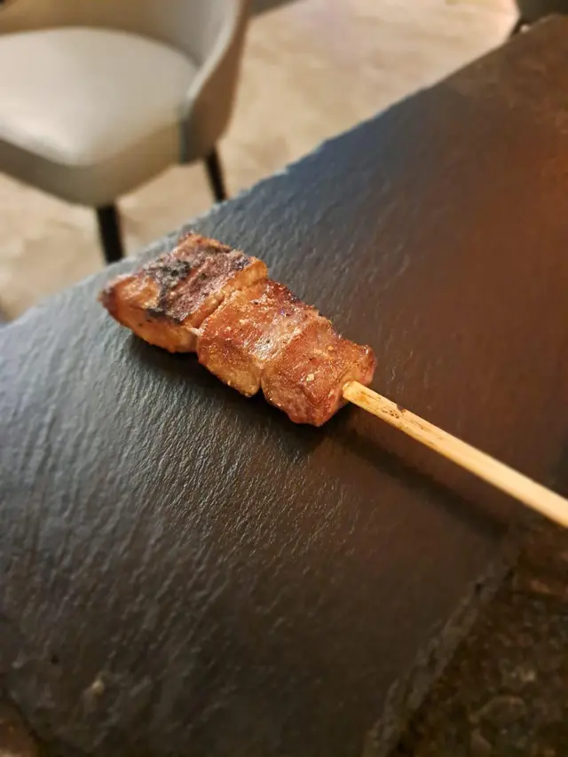 一定要大讚佢哋嘅 「紫蘇蟹籽墨魚滑」!呢個組合真係好有心思!墨魚滑本身打得非常彈牙爽口,鮮味十足,完全唔會有粉感。重點係面頭鋪滿粒粒卜卜脆嘅蟹籽,一咬落去嗰種爆裂感同鹹鮮味,即刻提升成個層次!最畫龍點睛嘅係融入咗 紫蘇葉嘅獨特香氣,嗰種帶點辛香、清新又帶少少薄荷涼感嘅風味,同海鮮真係天作之合,完全解咗膩感之餘,仲帶嚟一種好和風、好精緻嘅感覺。一串落肚,真係忍唔住想encore!絕對係必點之選,誠意推薦俾所有鍾意試新嘢嘅朋友!