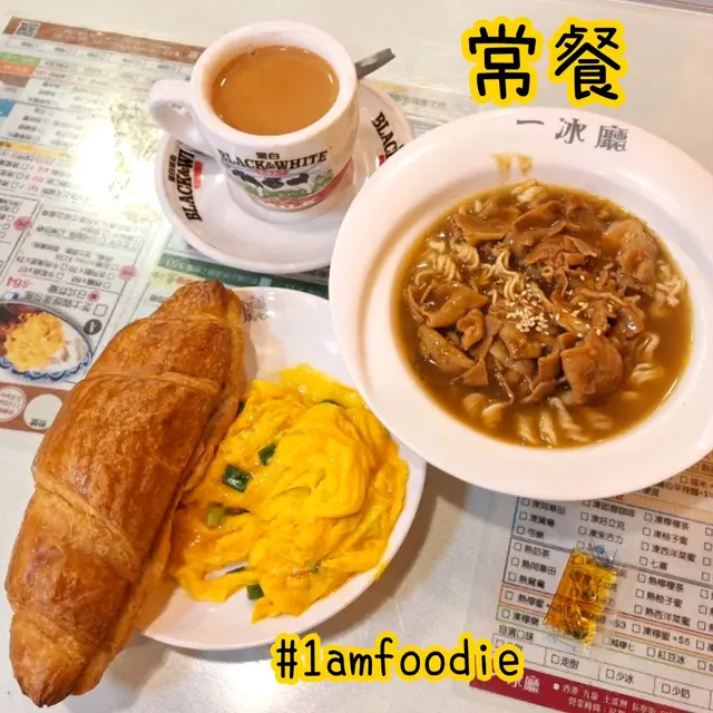 #1amfoodie #foodie #hkfoodie #thatfoodiething #hkfood #food #instafood #yummy #foodlover #delicious #foodies #tasty #globaleats #tastyfood #dessert #foodpics #followforfollowback #love #eat #1am九龍城區 #土瓜灣 #一冰廳 #常餐 #沙嗲黑豚一丁 #蔥花炒蛋 #芝腿牛角包 #熱奶茶 #1am1279 #1ambackup