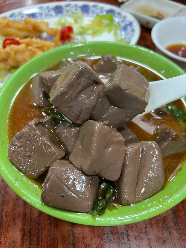 「韭菜豬紅」是潮州打冷必點的小食之一,香濃的醬汁滲入一磚磚的豬紅,味道香辣又惹味,煮得入味而不腥👍🏼