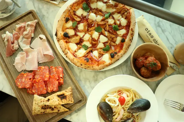 表面再灑上馬蘇里拉芝士、紅洋蔥、芫荽等配料令香脆的薄餅加添一份墨西哥風情。