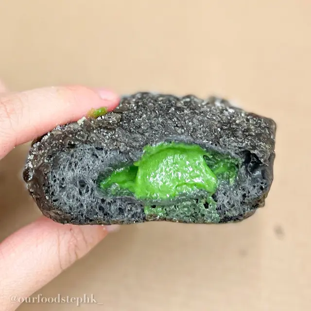 竹炭麵粉配埋抹茶醬,作為萬聖節特別口味,賣相幾有萬聖節氣氛🎃食落冬甩口感鬆軟,抹茶醬味道幾濃郁,不過抹茶味配竹炭味就好奇怪🤔唔推薦~