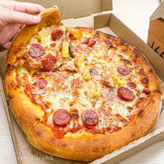 等緊外賣個陣已經聞到pizza新鮮出爐好香,估唔到番屋企後Pizza餅底口感仍然保持到好鬆軟😋配料亦幾豐富,包括番茄、水牛芝士、煙燻火腿、夏威夷香腸、菠蘿等~食個陣記得點埋送個自家製pizza 醬,令味道更豐富之如又唔會咁乾😍