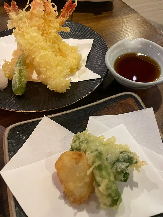 帶子天婦羅切開瞬間,溏心質地讓人驚艷!蝦天婦羅彎成優美弧線,輕咬「咔嚓」聲中嚐到蝦腦的甘醇。最妙是秋葵天婦羅,橫切面變成星星狀,黏滑汁液被薄脆麵衣封印。