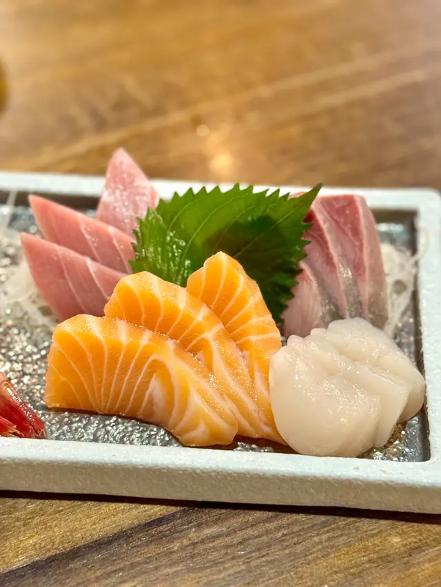 呢個刺身拼盤絕對值回票價!三文魚肥美豐腴,油甘魚入口即化,帶子鮮甜爽滑,甜蝦晶瑩剔透,大拖羅油脂豐富,每一件刺身都係新鮮到爆💯