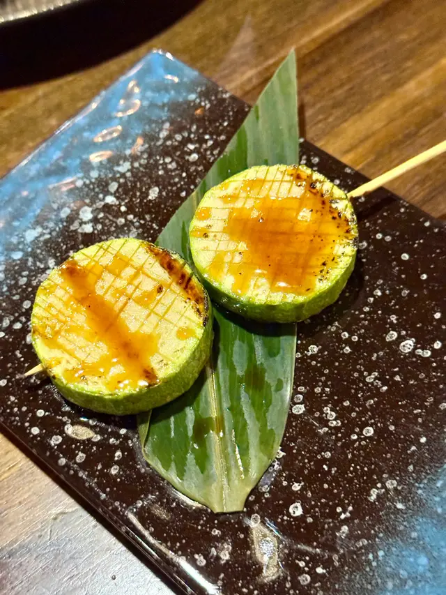 翠玉瓜燒得恰到好處,外層微焦,內裡多汁,食落清爽帶甜味,係串燒中嘅清新之選🌿