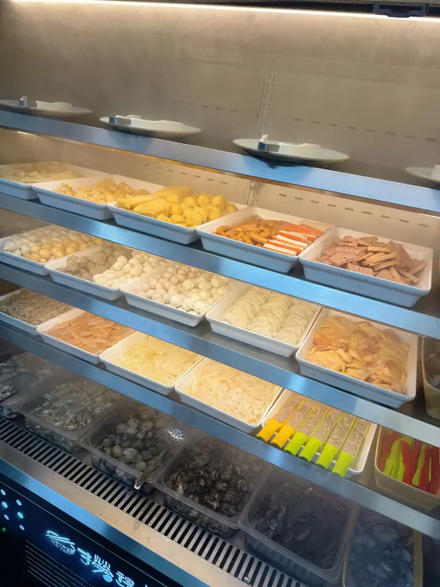 食物種類多到眼花撩亂✨兩個凍櫃放滿火鍋料:蔬菜、丸類、水魷魚、紫菜響鈴、魚皮應有盡有!海鮮區仲有活蜆、蝦任拎~最正係睇住員工即包手工水餃,食落飽滿多汁,有住家feel😎