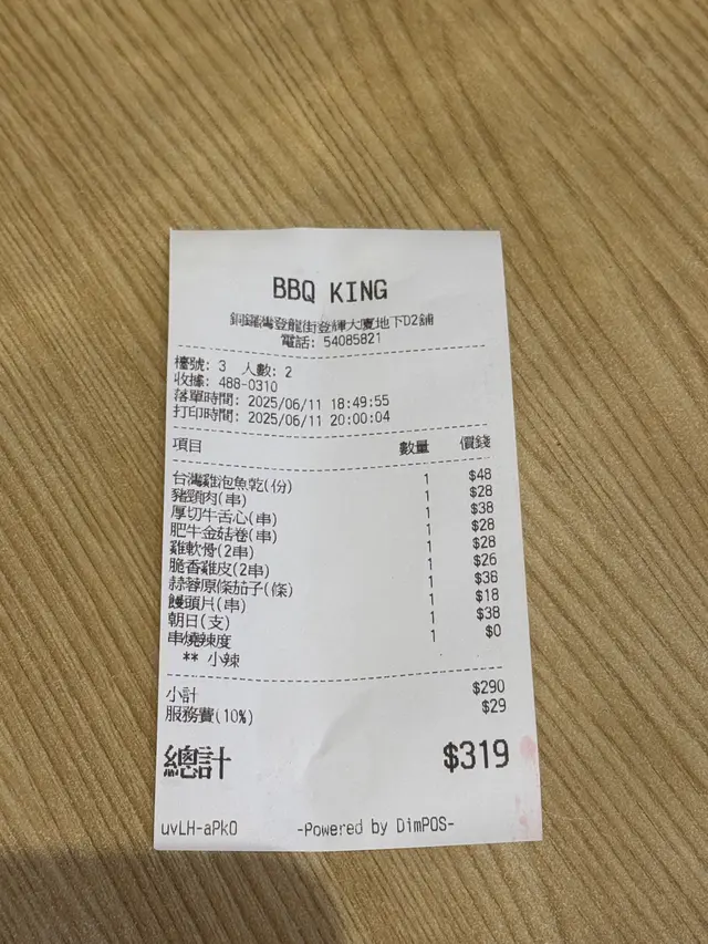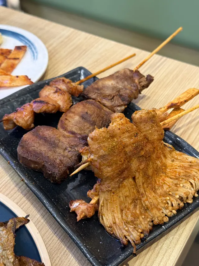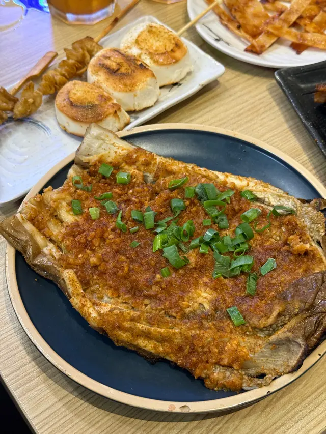 我和朋友兩個人,吃了幾款串燒,雞泡魚乾和蒜蓉原條茄子。大部分燒物都在燒烤後加上孜然粉,而且這次選擇了小辣,即叫即燒的燒物都非常惹味。其中,皇牌牛舌心是厚切的,外焦內嫩,有驚喜。特色小饅頭,半個饅頭為一塊吃起來不會有太大澱粉負擔,味道帶少少甜。