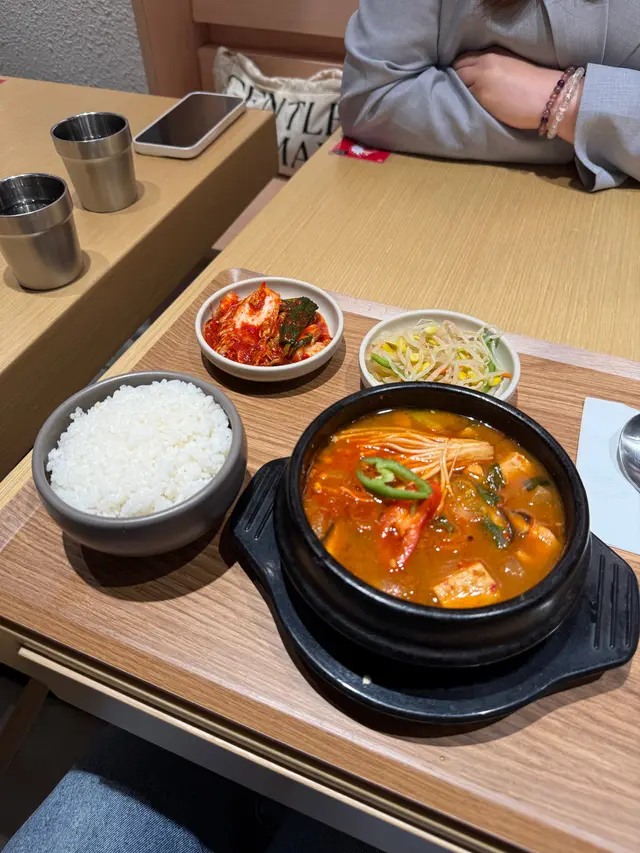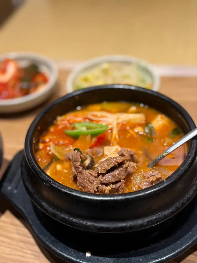 湯底用傳統大醬熬製,濃郁得嚟唔會死鹹,牛五花肉嫩滑,豆腐同蔬菜份量多到瀉!跟足韓國人食法,成碗飯倒落去撈勻,暖笠笠超滿足。