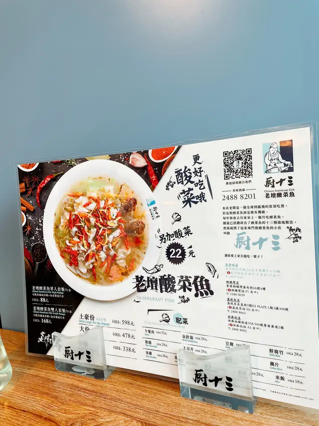 好奇點解餐廳改名「廚十三」,因為老闆自己都很熱愛酸菜魚,已鑽研出13種酸菜魚食法,有機會都想品嚐一下其餘12款口味。