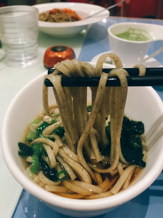 晚餐主菜比較推薦海鮮海藻意粉。其與衆不同的地方是,麵條加入海藻製成,吃起來口感皺皺粗粗,頗有彈性和嚼勁炒香了的意粉更惹味。但略嫌胡椒粉下得過於重手。和風牛肉麵飯餐份量較多,麵條泡在重胡椒味的湯里,味道比炒意粉失色一點。