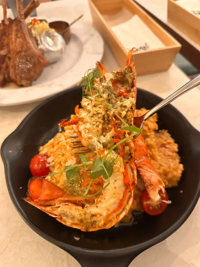 有半隻龍蝦肉肉質厚實,肉都很容易離殼,而且啖啖肉有龍蝦膏,意大利飯口感濕潤吸收了不少龍蝦汁,口味不太重感覺很健康。