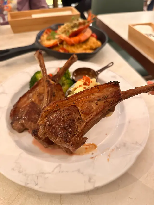 羊扒叫了七成熟,羊扒大大件很厚身,入口肉質軟腍不會太乾太硬,連同配菜烤焗薯及西蘭花吃,味道剛剛好,而且有燒汁蘸點,有少少羊羶香味亦不會太重油膩感。