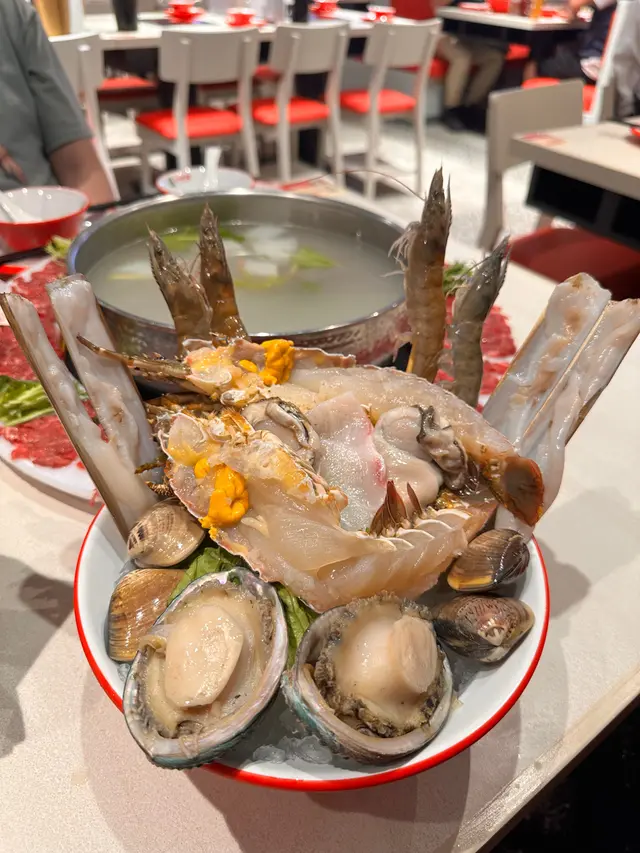 龍蝦(半隻)、蟶子、鮑魚、生蠔、龍躉片、沙白(2隻)、海蝦(2隻)