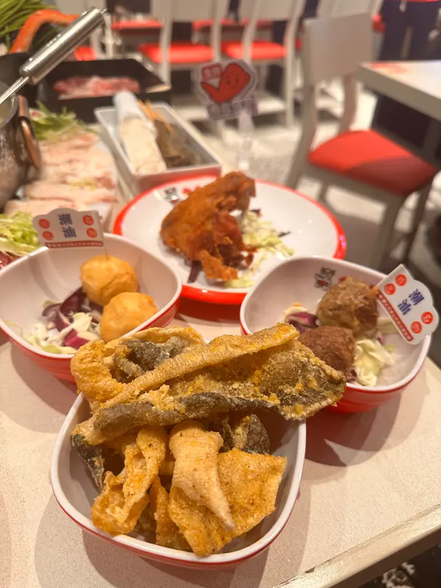 還有幾款潮汕小食,例如即「椒鹽炸牛丸」、「椒鹽炸花枝丸」及「手工咸蛋黃炸魚皮」及「潮汕南乳炸雞翼」等,而「椒鹽炸牛丸」,更是爆汁噴到對面檯,很誇張又惹味香口,吃時要小心。