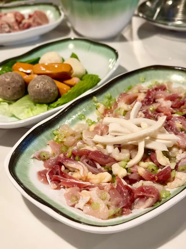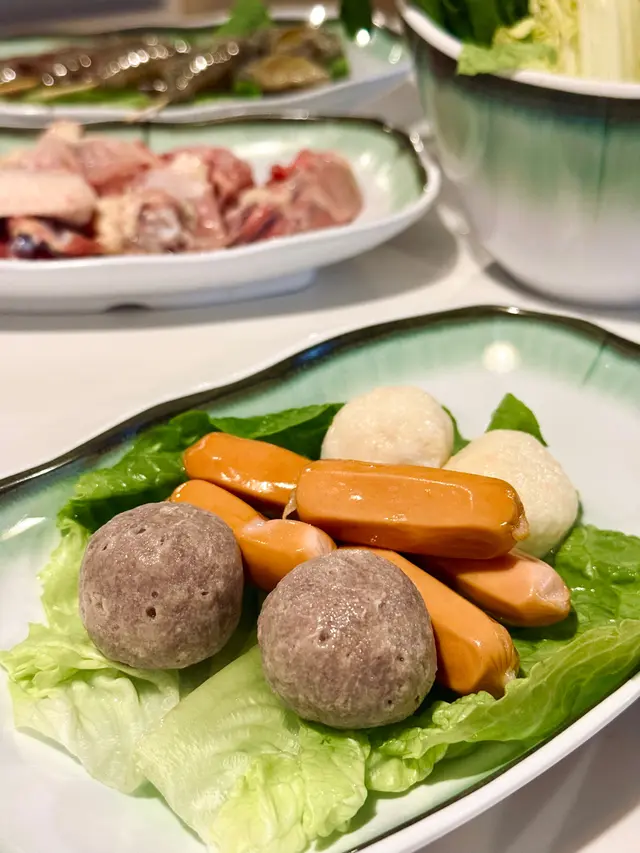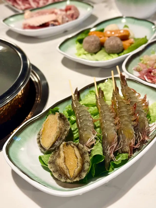 套餐仲有勁量蔬菜拼盤,(內有驚喜嘅)肉丸s,鮮蝦同鮑魚🦐啲蝦用呢個咁清甜嘅湯底淥 食落零舍鮮甜🫢