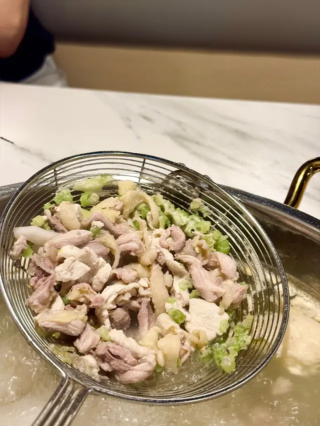 食嘅時候可以連埋椰子肉🥥🥥一齊放入去淥1️⃣5️⃣秒左右,你會見到啲肉開始縮,咁就食得啦~食之前記得調翻個醬汁,呢度其中一個特別之處係有埋秘制沙薑🫚比你想落幾多就幾多。配脆皮雞真係好夾,口感彈牙,邊邊係脆皮狀態🍗