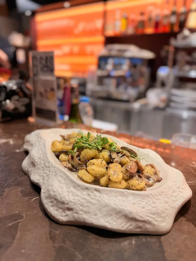 店員話一定要趁熱食!黑松露醬好濃稠,加入左多種野菌🍄包括:椎茸、白露菇、靈芝菇,薯糰幾煙韌,沾滿曬黑松露醬汁,十分Creamy!