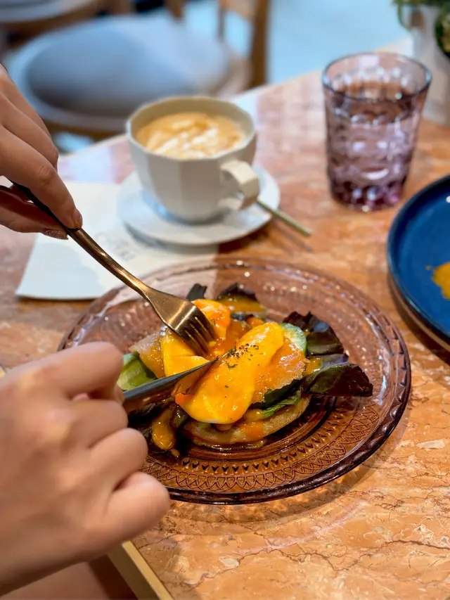 𝐒𝐚𝐥𝐚𝐝好大份🤣底部是超多的沙律菜、面頭鋪上雙色番茄仔🍅、沙律菜、藍莓🫐、水波蛋、牛油果🥑以及燒牛肉。燒牛肉淋上了蘑菇𝐬𝐚𝐮𝐜𝐞(開初還以為是沙爹牛😂)可惜燒牛肉𝐭𝐞𝐱𝐭𝐮𝐫𝐞略韌。還可以自行淋上黑醋調味~題外話,我和友人一致認為如果牛油果「片」得薄點一定會更𝐢𝐠𝐚𝐛𝐥𝐞!