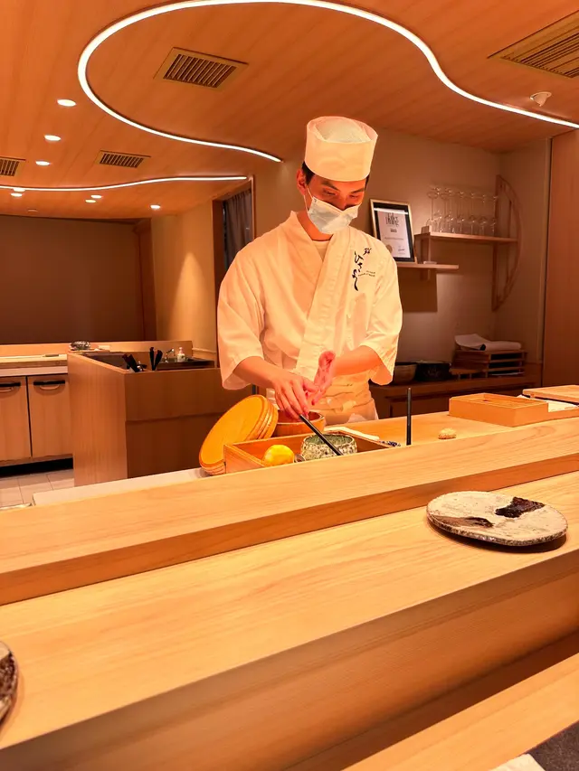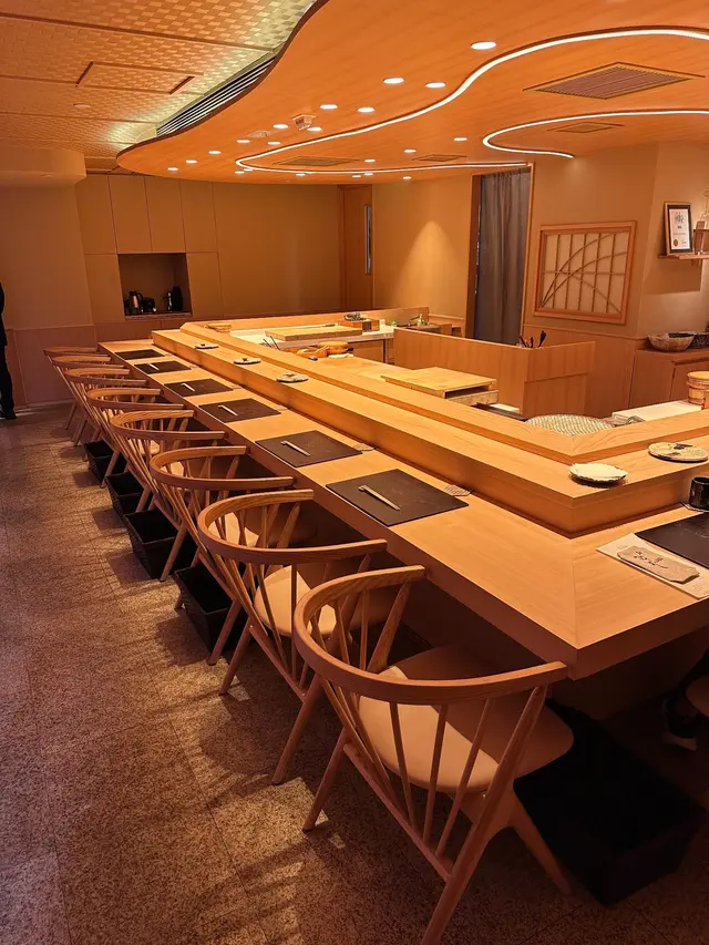 店內裝潢以木系為主,搭配溫暖的金黃色燈光,坐位十分舒適寬敞,還可以欣賞到師傅的精湛刀工,Mike師傅👨🏻🍳細心介紹每一個菜式、食材新鮮,令到這一餐飯增添了色彩🫶🏻✨