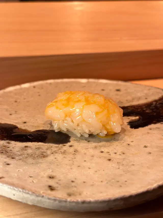 🍣白蝦:鮮嫩彈牙,帶有微妙的甜味,配上蛋黃豉油,更出色