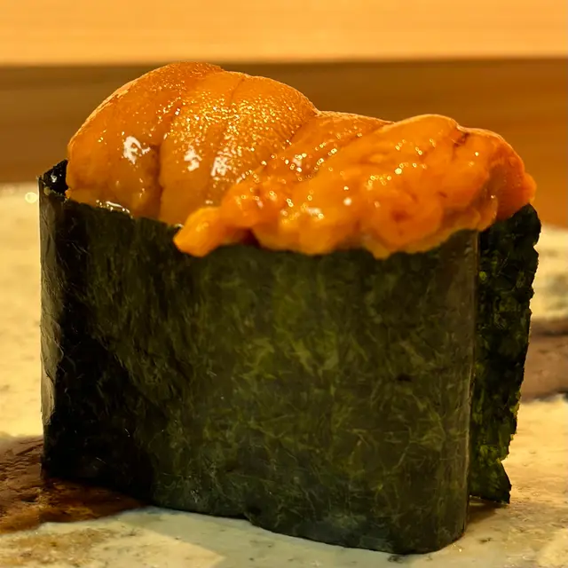 🍣馬糞海膽: 來自北海道的馬糞海膽,肉呈橘紅色,入口味道濃郁,甘甜度十足,滿足