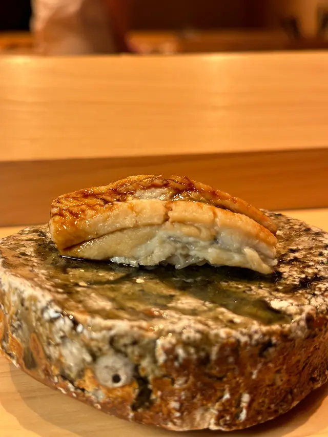 🍣 海鰻:肉質紮實細嫩,甘甜肥美,再以山椒粉調味,讚👍