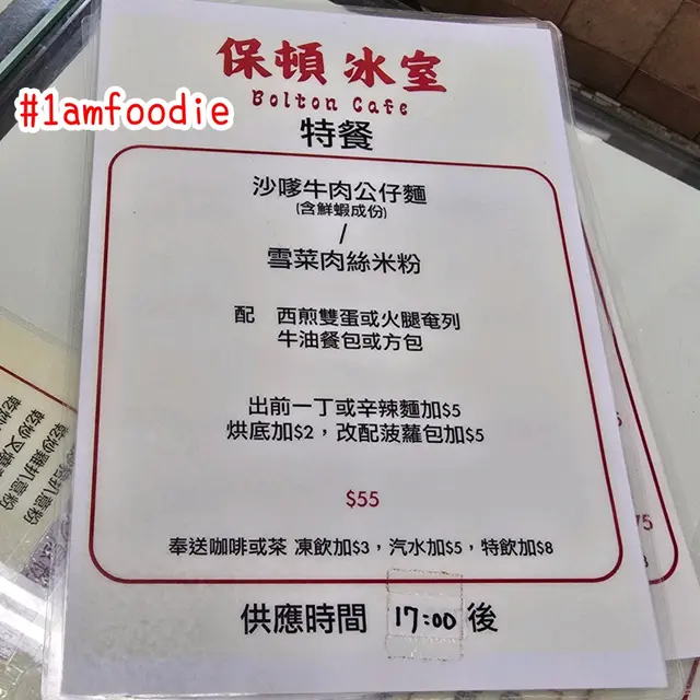 #1amfoodie #foodie #hkfoodie #thatfoodiething #hkfood #food #instafood #yummy #foodlover #delicious #foodies #tasty #globaleats #tastyfood #dessert #foodpics #followforfollowback #love #eat #1am油尖旺區 #尖東 #尖沙咀 #保頓冰室 #特餐 #沙爹牛肉公仔麵 #火腿奄列 #菠蘿包 #熱奶茶 #法蘭西多士 #1am1807 #1ambackup