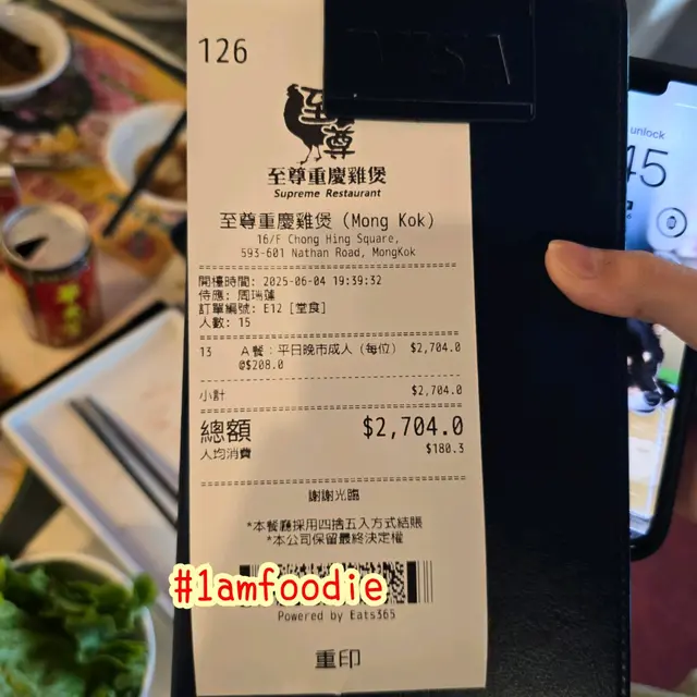 火鍋料任食係包括澳洲牛肩胛肉眼、雪花肥牛、黑毛豬梅花、頂級小肥羊肉、紐西蘭青口等等,不過都係志在傾偈,唔算好重視食物質素。而且自助吧仲有甜品、小食我都冇攞,以 foodie 嚟講真係唔稱職。埋單 $2704,不過我哋 15 人,人均 $180.3,唔貴。。。