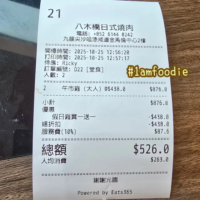 除此以外,佢哋嘅「飲品櫃」同「甜品櫃」嘅嘢係無限追加,飲品嘅選擇有好多,揀都有困難。而甜品就有成個雪櫃任攞,我比較中意食甜筒,哈哈。計錢,佢哋係做買一送一無錯,用返原價嚟加一,折實咗之後嘅埋單價係 $526,兩位嚟講呢個價算幾過癮。。。