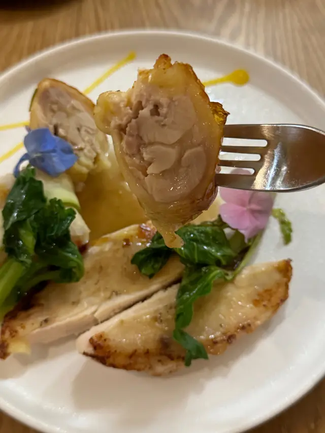 - 非一般嘅雞來,雞肉軟嫩,外皮煎得香脆,難得嘅係連雞胸都嫩,建議一整啖食,層次豐富