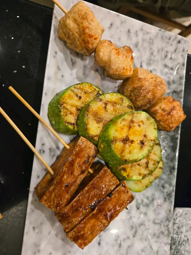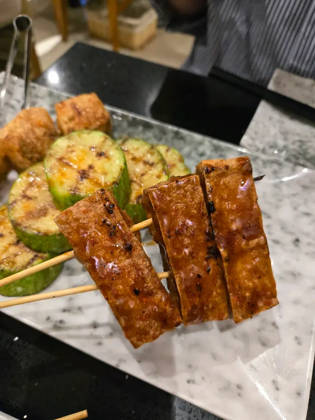 - **串燒豆腐($22)**:外脆內滑,外層掃咗啲甜醬油吊味,素食者必點。
